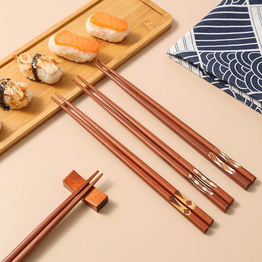 Red Sandalwood Chopsticks Japanese Painted Style Creative Gift 5 Pairs Sets