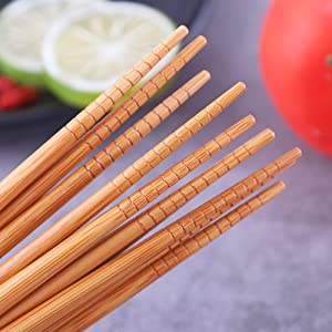 Healthy natural bamboo chopsticks, reusable, easy to clean, burr-free and non-stick, not easy to mildew, can use for years. Bamboo is naturally heat-resistant, making it the perfect material for chopsticks that will be used to handle hot foods.